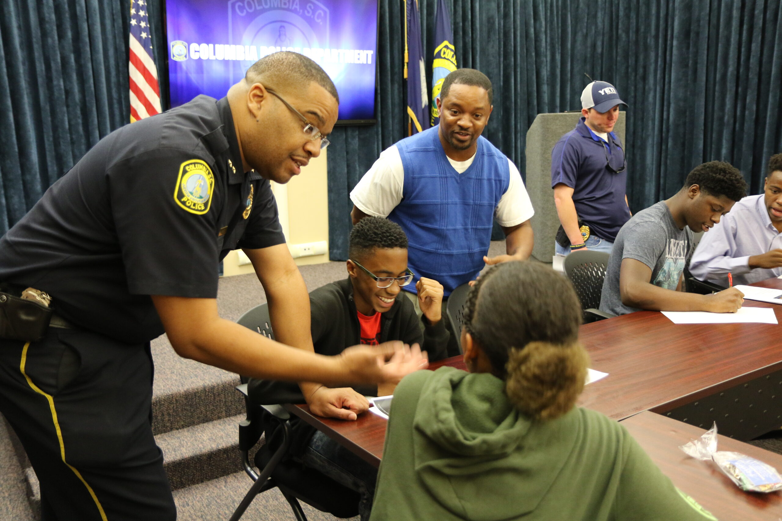 The Columbia Police Department initiated a program geared toward promoting mutual dialogue between law enforcement and local youth called Young Ambassadors for Justice Student Roundtable. The opportunity allows high school students to directly discuss youth-related topics with members of the department’s command leadership staff. Invitation letters were distributed to City of Columbia high schools in collaboration with principals, guidance counselors, and teachers. As a result, students will develop leadership skills, learn about their community, fellow students, and CPD. In addition to improving CPD’s relationship with community youth, the roundtable seeks to bring awareness to youth crime related issues, and promote positive interaction with police. The topics of discussion include: personal safety, youth violence, relationship issues, substance abuse, legal issues, current events, and dangers of social media.